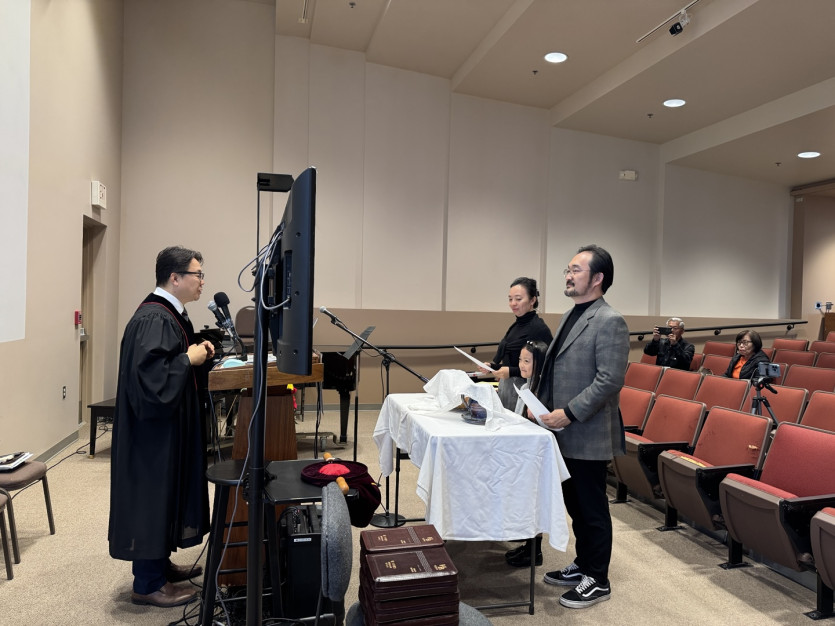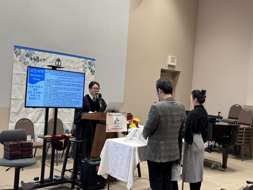 챨리/그레이스양 집사님 내외의 성가찬송과 박동일성도 가정의 교인 서약식, 그리고 신년성찬식을 감사의 제사로 드렸습니다.