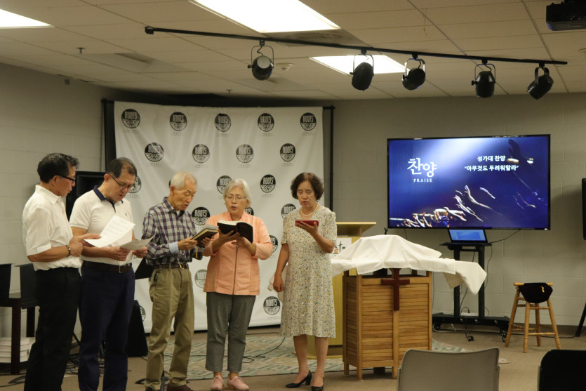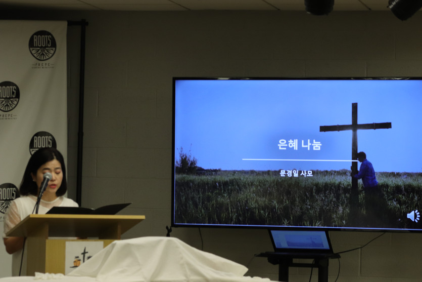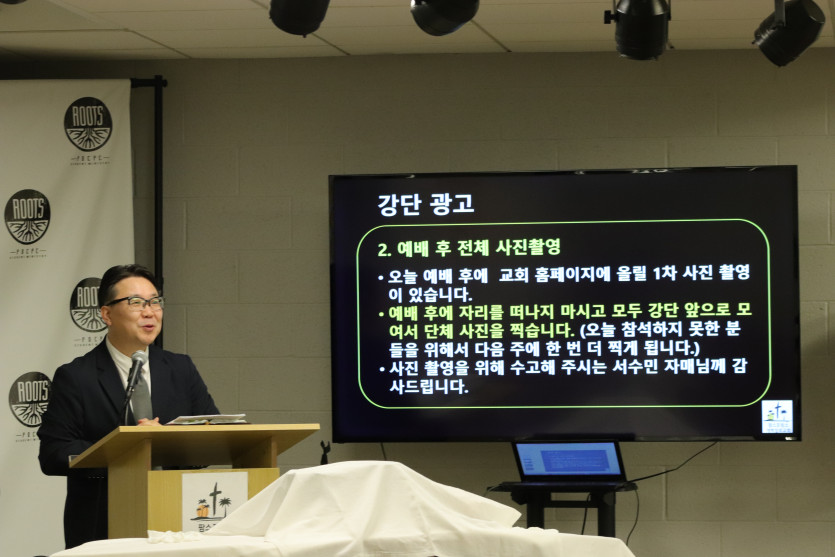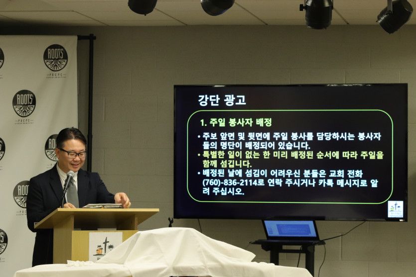 회중기도와 은혜나눔, 성가대 찬양과 목사님의 강단광고