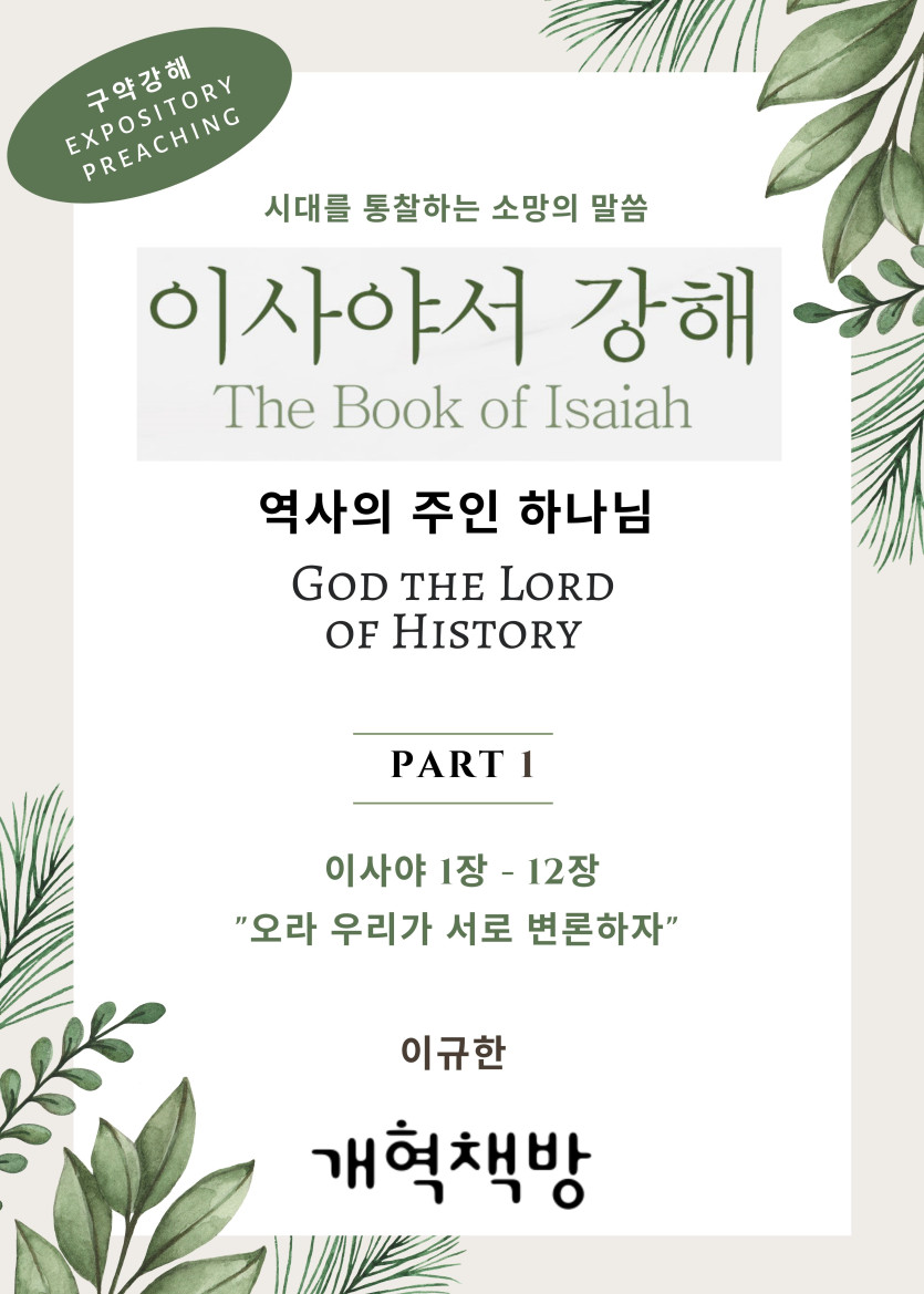 이사야서 강해 제1권『역사의 주인 하나님』은 팜스프링스 개혁장로교회 담임 이규한 목사(Rev. Kyoohan Lee, Ph.D.)의 이사야서 강해 설교집(개정판)입니다.