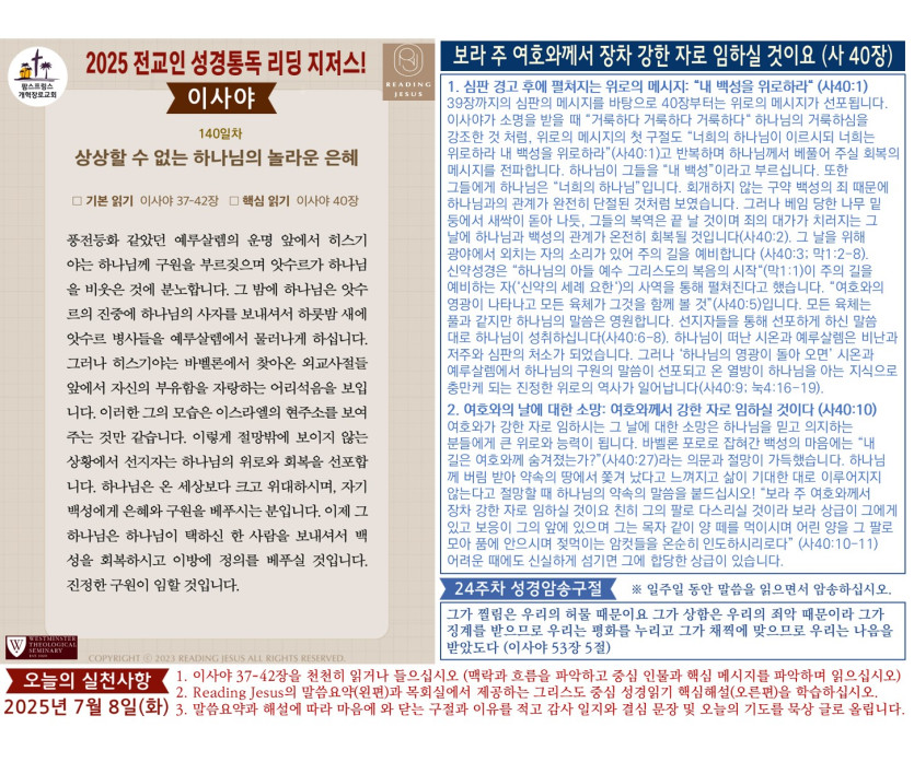 - 다음글(2025년 7월 7일) '리딩 지저스' 성경읽기 영상과 말씀요약/본문해설 (제139일차) 25.07.12