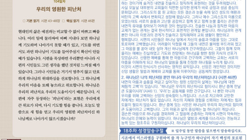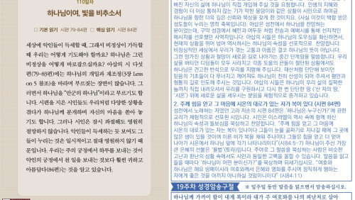 할렐루야! 2025년 전교인성경통독 리딩 지저스 제110일차 말씀은 시편 79-84편입니다. 아삽의 시들은 최악의 상황에서 고난 받는 중에 선포한 하나님의 속성과 역사에 대한 말씀입니다. 시인은 비정상적인 세상 속에서 혼돈에 빠진 자신의 삶에 하나님이 직접 개입해 주실 것을 요청합니다. 인생의 지혜와 경험이 더 이상 통하지 않는 기가 막힌 웅덩이와 같은 상황이 시인으로 하여금 하나님을 향한 더욱 깊은 신뢰와 묵상을 갖게 한 것이지요. (사실 이것이 택함 받은 성도들이 누리는 영적 축복입니다). 아삽은 성전에서 하나님을 찬양하는 분이었는데, 구약 성경에서 혜만과 여두둔 처럼 찬송과 예배시를 통해 선지적인 메시지를 선포했던 사역자입니다. 아삽의 시들은 하나님의 도우심을 확신하면서, 현재의 상황을 뛰어 넘어 역사하시는 하나님의 속성을 선포적으로 찬양합니다. 비정상적인 세상에서 우리가 겪는 고통과 아픔은 결코 하나님의 뜻이 아닙니다. 그런 망가진 상황과 절망이 새로운 길로 나아가는 중간 단계임을 말씀합니다. 우리 삶을 버티던 디딤돌이 모두 사라지고 각종 도움의 끈들이 절단된 상황에서도 하나님은 견고한 반석으로 우리를 지탱해 주십니다. 태산처럼 단단해 보이던 믿음의 기초들이 다 무너지고 깨어져도 하나님이 친히 산성이 되어 주셔서 평안과 형통의 길로 인도해 주시는 것입니다. 아삽의 시들은 하나님이 우리 삶의 질퍽한 늪까지 직접 내려오셔서 우리를 구원하시고 다시 한 번 단단한 땅 (‘산 자의 땅,’ ‘시온’) 위에 새로운 삶을 세우시는 분임을 체험적으로 증거하고 있습니다.