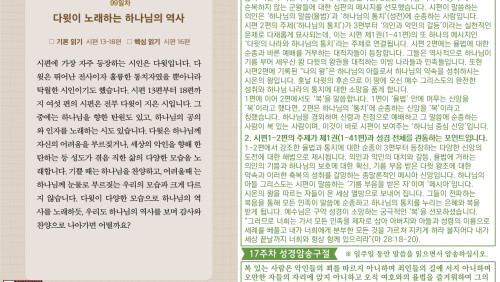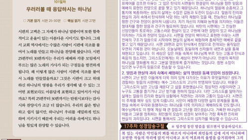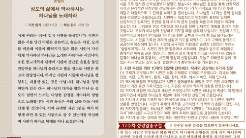 할렐루야! 2025년 전교인성경통독 리딩 지저스 제99일차 말씀은 시편 13-18편입니다. 계속되는 시편 묵상을 위해서 다음 10가지 질문을 확용하십시오. (1) 주제가 무엇입니까? 시편은 보통 주제별로 10개로 구분합니다. 감사와 예배, 찬양, 비탄, 민족 애가, 통치, 시온, 참회, 저주, 메시야 예언, 지혜 입니다.(2) 역사적 배경이 무엇입니까? 시편은 출애굽부터 바벨론 포로 귀환 시대까지 약 천년의 기간 동안 기록되었습니다. 시편은 시대와 역사적 상황을 반영합니다. (3) 저자가 체험한 하나님과 세상은 무엇입니까? 시편은 하나님의 백성이 이 땅에서 살아가면서 체험한 하나님과 세상에 대해 기록한 신앙고백 모음입니다.(4) 저자가 시편을 기록한 특수한 목적과 의도가 무엇입니까? 각 시편은 개인적 상황을 반영합니다. 시편의 주제와 목적을 고려하면 시의 맥락과 흐름이 잡힙니다.(5) 저자가 말씀하는 하나님은 어떤 분이십니까? 시편에는 “하나님을 아는 지식”(하나님은 누구신가?)이 여러 개의 주제와 질문으로 표현되어 있습니다. (6) 저자가 올리는 경배와 찬양 또는 개인적인 탄원과 간구의 내용이 무엇입니까? (7) 시편 기자의 고백이 나의 고백이 되는 부분은 무엇입니까? 시편은 다양한 삶의 문제들을 개인적인 고백의 형태로 표현한 심경의 토로입니다.(8) 오늘의 삶에서 나와 함께 하시는 하나님은 어떤 분이십니까? 시편은 현실 속에서 동행하시는 하나님의 역사를 체험하기를 간구하는 영혼의 고백입니다. (9) 오늘의 삶을 위한 내 영혼의 시편(묵상/찬양/적용/결심문/기도문)을 작성하십시오. 시편은 하나님을 향한 인간의 주관적 신앙 체험의 산물입니다. (10) 말씀과 삶과 예배가 어우러진 진솔한 삶의 언어로 나의 신앙을 표현하십시오.하나님의 말씀은 오늘의 우리의 삶에 언제나 적용할 수 있는 살아있는 주님의 음성입니다.