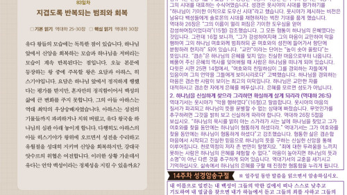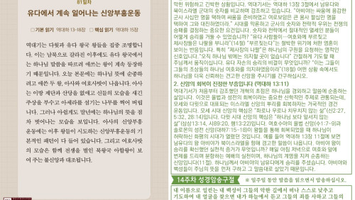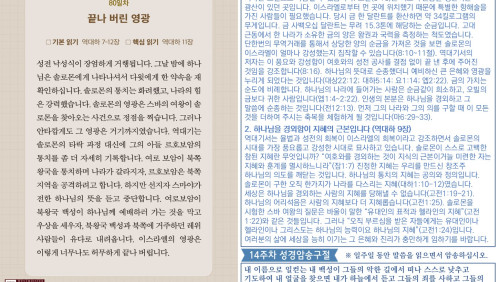 할렐루야! 2025년 전교인성경통독 리딩 지저스 제81일차 말씀은 역대하 13-18장입니다. 역대기서가 처음부터 강조했던 개혁의 초점은 하나님을 경외하고 말씀에 순종하는 삶입니다. 이것은 율법과 성전의 회복이라는 중요한 신학적인 주제로 관통되는데, 모세와 다윗으로 대표되는 이스라엘 신앙의 뿌리를 회복하자는 거국적인 경건 운동입니다. 모세 시대 신앙의 핵심은 “좌로나 우로나 치우치지 않는 삶”(신2:27, 5:32, 28:14)입니다. 다윗 시대 신앙의 핵심은 “하나님 보다 앞서지 않는 삶”(삼상13:14, 시89:20, 행13:22)입니다. 여호수아의 율법 신앙(수1:7-9)과 솔로몬의 성전 신앙(대하7:15-18)이 왕들을 통해 회복되었을 때 하나님이 허락하신 화평의 시대가 열렸던 것입니다. 예를 들어 역대하 13장 11절에 보면 남유다의 왕 아비야가 북이스라엘을 향해 경고한 말씀이 나옵니다. 아비야 왕이 승리를 확신했던 실천적 증거가 무엇입니까? 매일 아침 저녁으로 여호와 앞에 번제를 드리며 분향하는 예배의 실천이며, 하나님의 계명을 지켜 순종하는 신앙입니다(11절). 하나님께서 아비야의 남유다에게 승리를 주셨습니다. 아비야와 백성들이 주님의 뜻을 먼저 구하고 그 말씀대로 살았기 때문입니다. 신앙의 회복이 진정한 부흥입니다 (역대하 13:11)