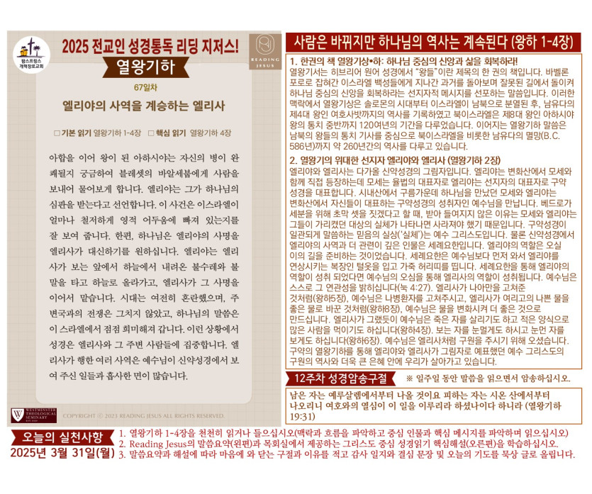 (2025년 3월 31일) '리딩 지저스' 성경읽기 영상과 말씀요약/본문해설 (제67일차)