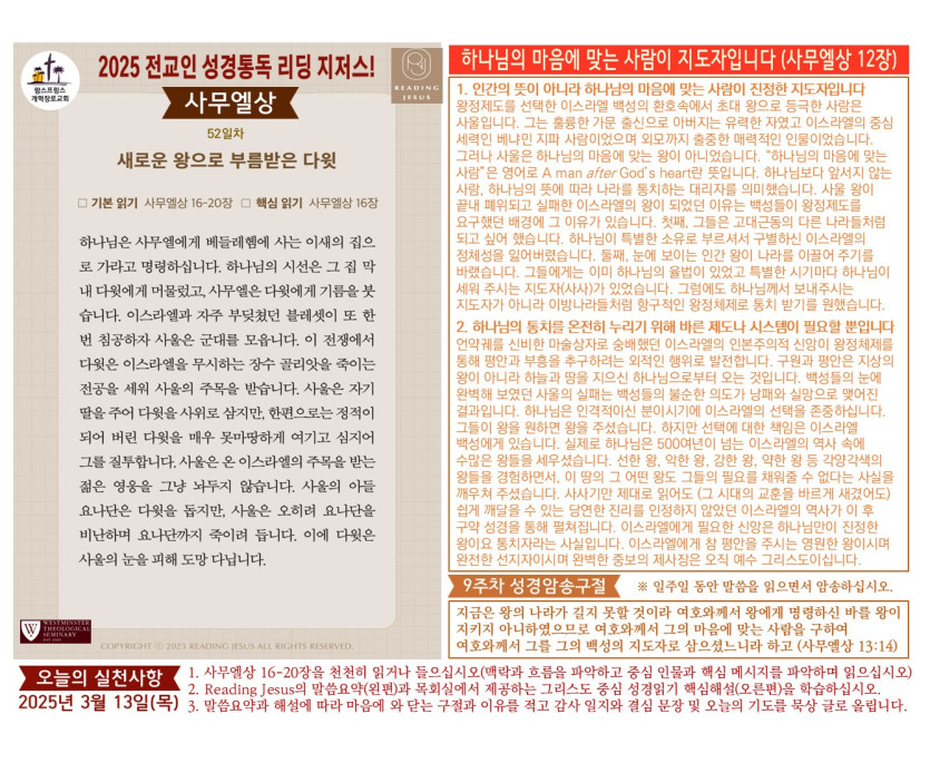 (2025년 3월 13일) '리딩 지저스' 성경읽기 영상과 말씀요약/본문해설 (제52일차)