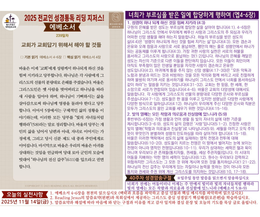 (2025년 11월 14일) '리딩 지저스' 성경읽기 영상과 말씀요약/본문해설 (제239일차)