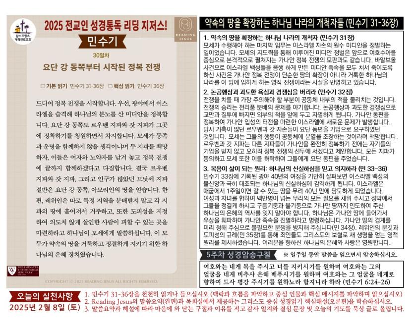 (2025년 2월 8일) '리딩 지저스' 성경읽기 영상과 말씀요약/본문해설 (제30일차)
