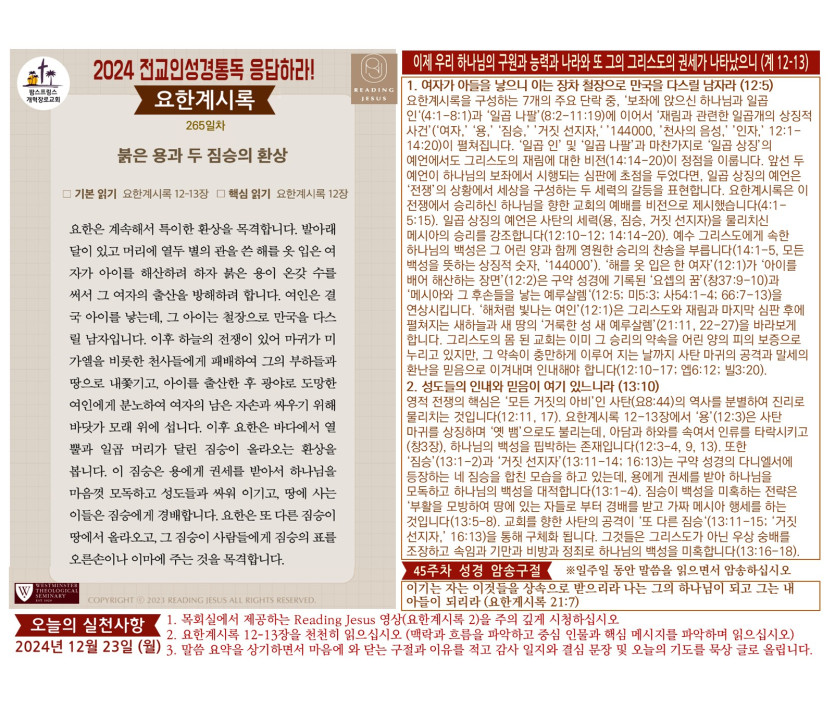 (2024년 12월 23일) 'Reading Jesus 응답하라' 말씀요약과 본문해설 (제265일차)