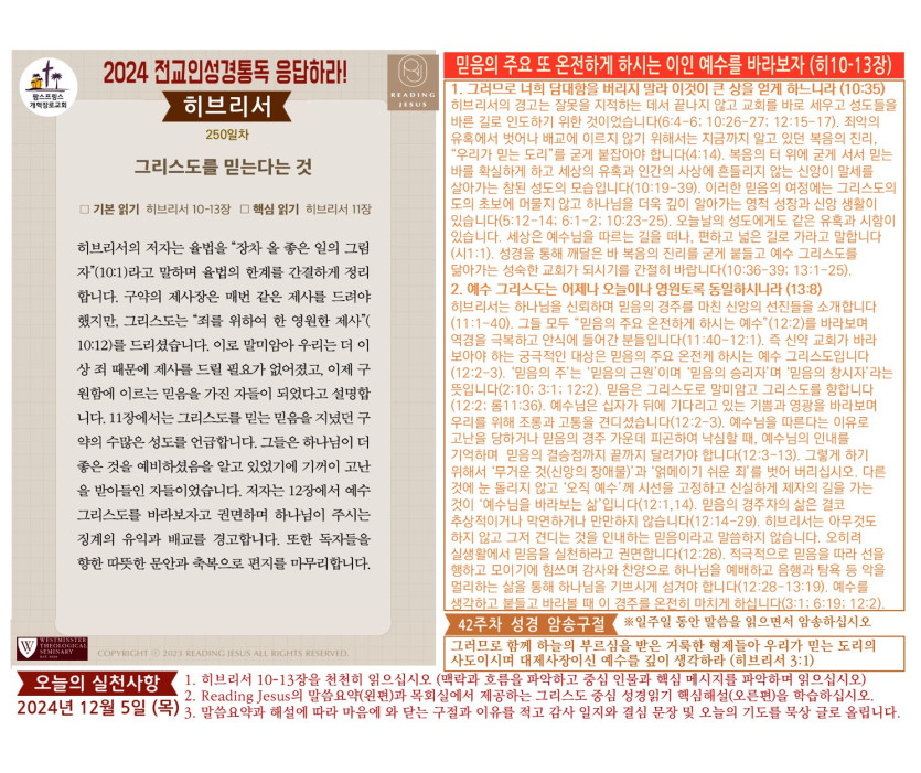 (2024년 12월 5일) 'Reading Jesus 응답하라' 말씀요약과 본문해설 (제250일차)