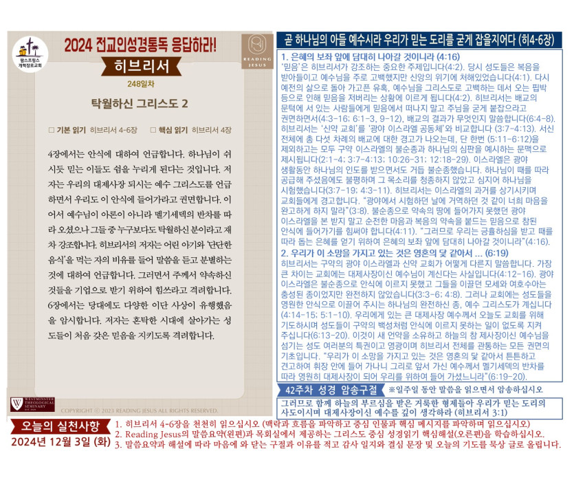 (2024년 12월 3일) 'Reading Jesus 응답하라' 말씀요약과 본문해설 (제248일차)