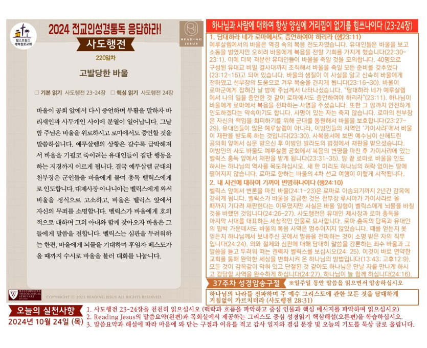 - 다음글(2024년 10월 23일) 'Reading Jesus 응답하라' 말씀요약과 본문해설 (제219일차) 24.10.23