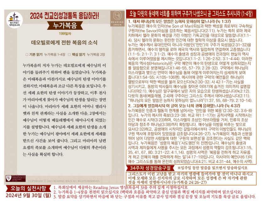 (2024년 9월 30일) 'Reading Jesus 응답하라' 말씀요약과 본문해설 (제199일차)