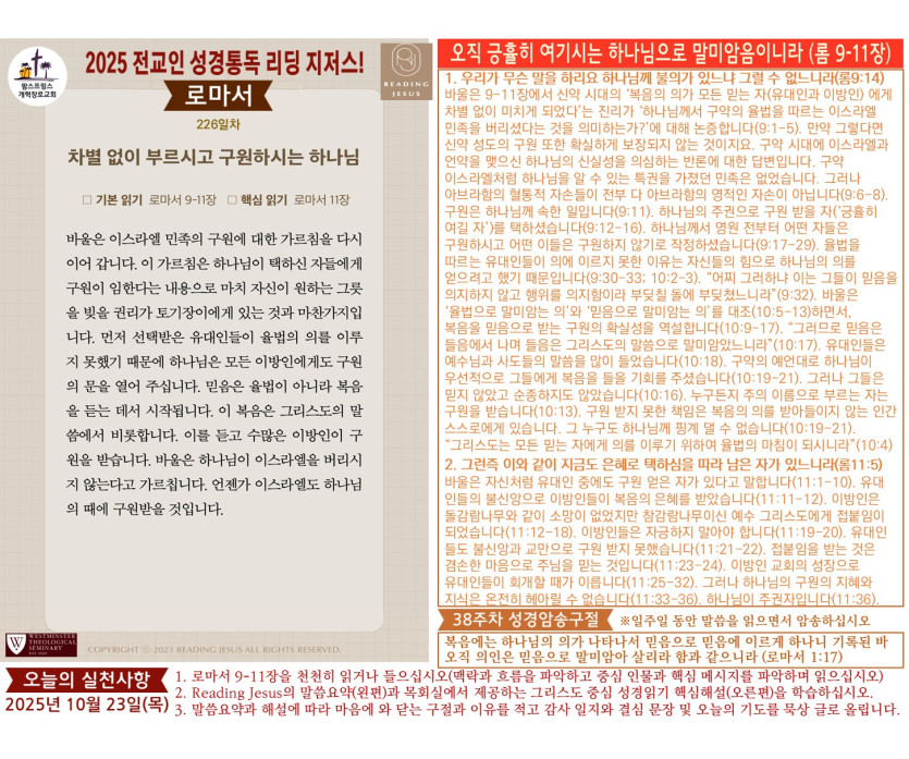 (2025년 10월 23일) '리딩 지저스' 성경읽기 영상과 말씀요약/본문해설 (제226일차)