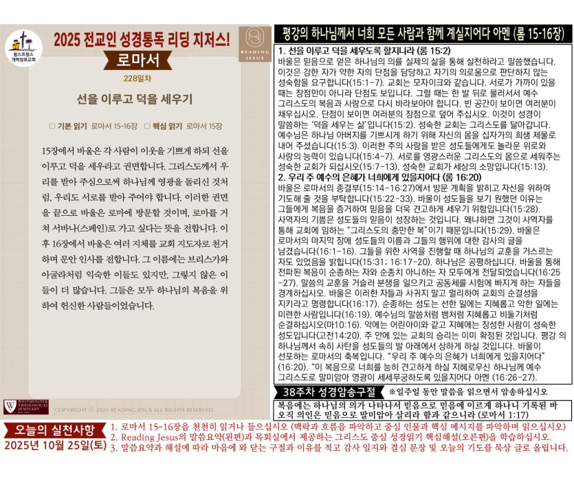 (2025년 10월 25일) '리딩 지저스' 성경읽기 영상과 말씀요약/본문해설 (제228일차)