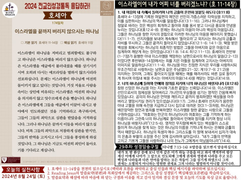 - 다음글(2024년 8월 23일) 'Reading Jesus 응답하라' 말씀요약과 본문해설 (제173일차) 24.08.24