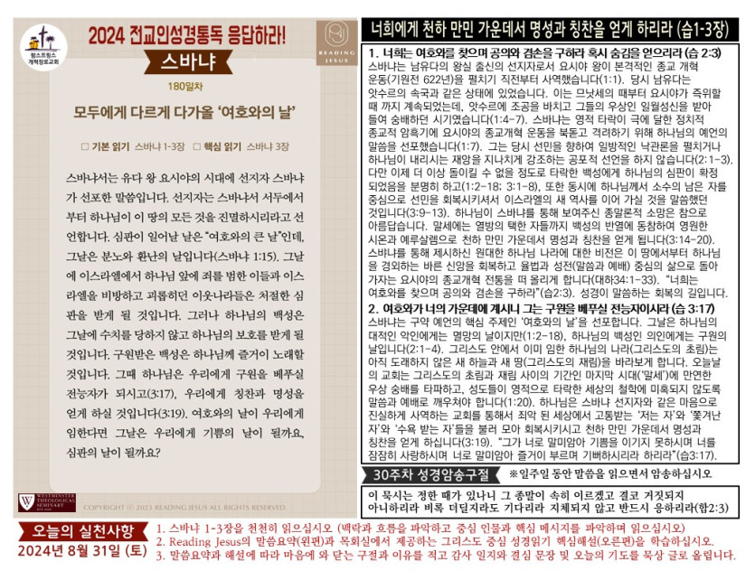 - 다음글(2024년 8월 30일) 'Reading Jesus 응답하라' 말씀요약과 본문해설 (제179일차) 24.08.30