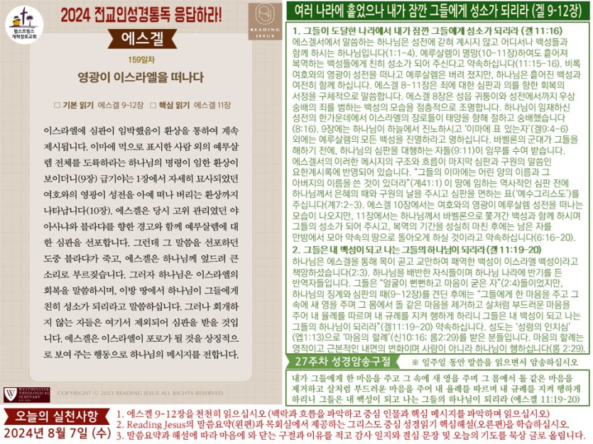 (2024년 8월 7일) 'Reading Jesus 응답하라' 말씀요약과 본문해설 (제159일차)