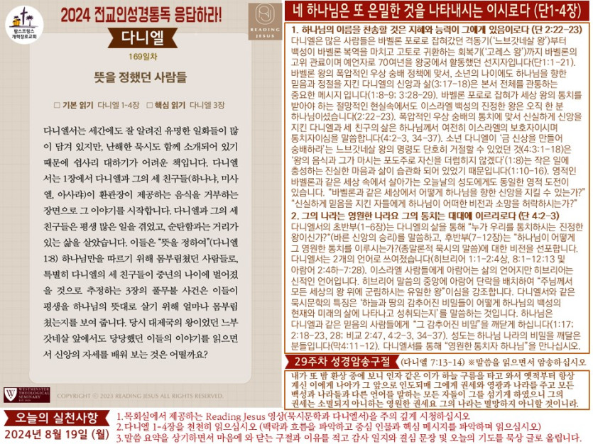 (2024년 8월 19일) 'Reading Jesus 응답하라' 말씀요약과 본문해설 (제169일차)
