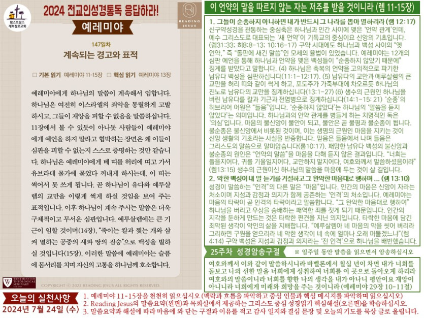 - 다음글(2024년 7월 23일) 'Reading Jesus 응답하라' 말씀요약과 본문해설 (제146일차) 24.07.27