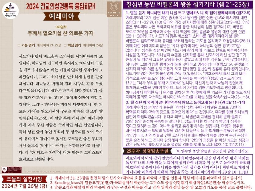 - 다음글(2024년 7월 25일) 'Reading Jesus 응답하라' 말씀요약과 본문해설 (제148일차) 24.07.27