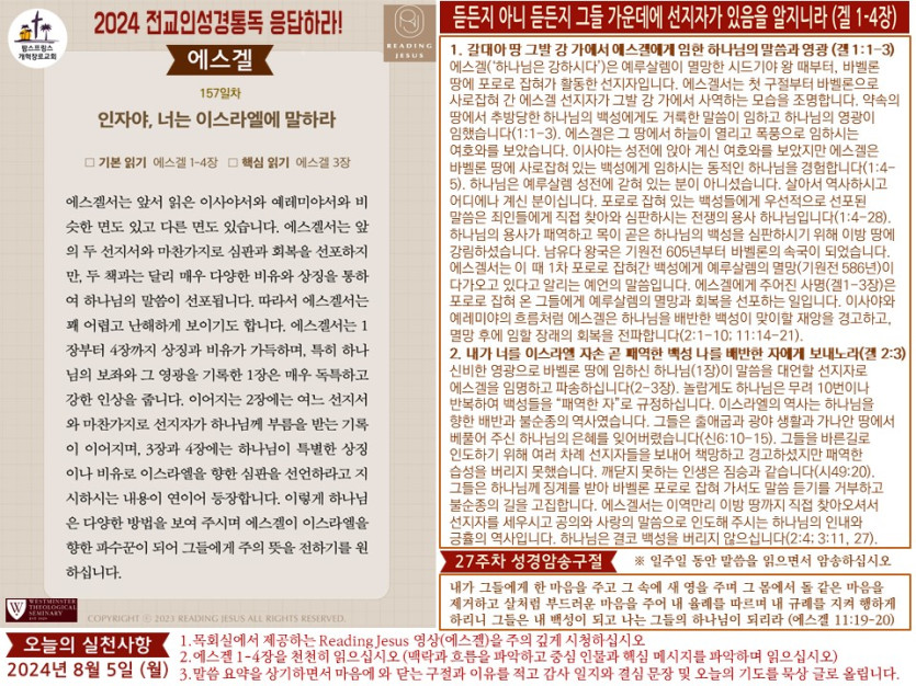 (2024년 8월 5일) 'Reading Jesus 응답하라' 말씀요약과 본문해설 (제157일차)