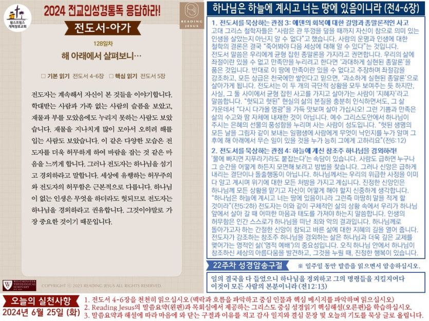 (2024년 6월 25일) 'Reading Jesus 응답하라' 말씀요약과 본문해설 (제128일차) 입니다.