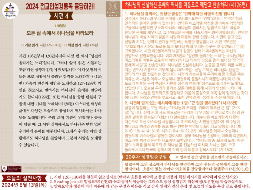 (2024년 6월 13일) 'Reading Jesus 응답하라' 말씀요약과 본문해설 (제118일차) 입니다.