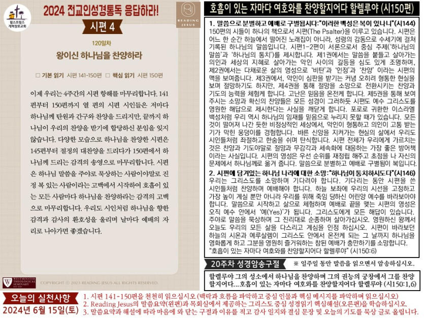 (2024년 6월 15일) 'Reading Jesus 응답하라' 말씀요약과 본문해설 (제120일차) 입니다.