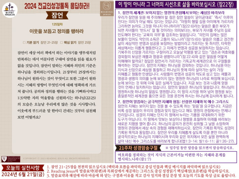 (2024년 6월 21일) 'Reading Jesus 응답하라' 말씀요약과 본문해설 (제125일차) 입니다.