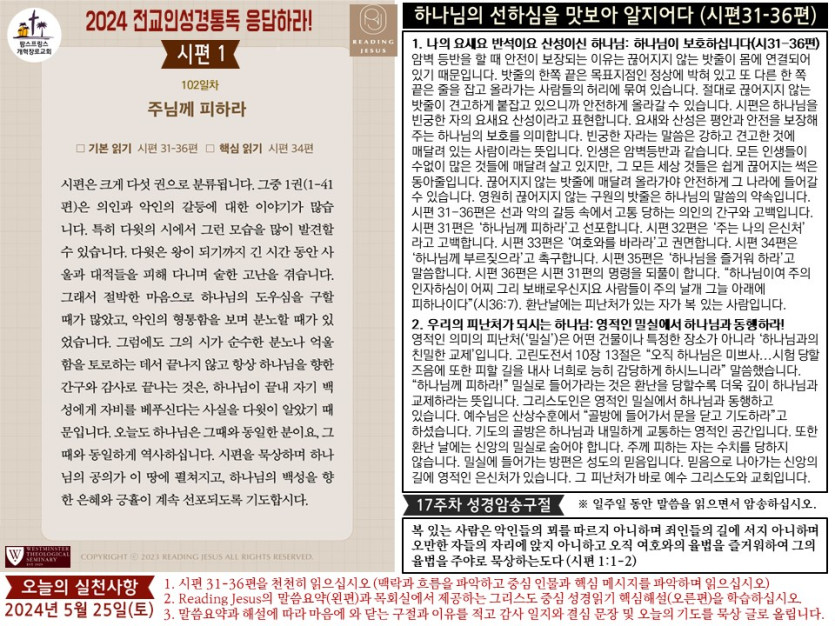 - 다음글(2024년 5월 24일) 'Reading Jesus 응답하라' 말씀요약과 본문해설 (제101일차) 입니다. 24.05.24