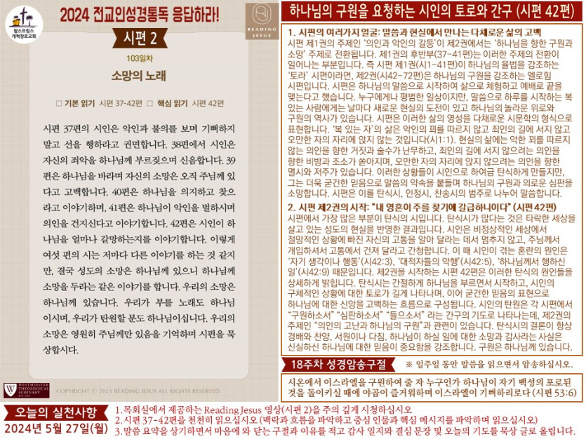 (2024년 5월 27일) 'Reading Jesus 응답하라' 말씀요약과 본문해설 (제103일차) 입니다.