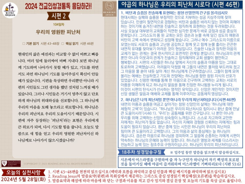 (2024년 5월 28일) 'Reading Jesus 응답하라' 말씀요약과 본문해설 (제104일차) 입니다.