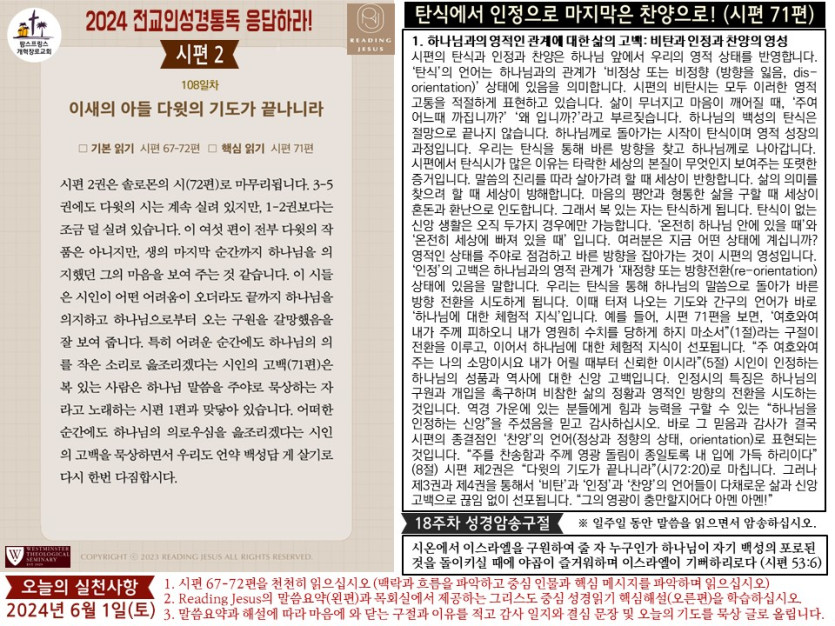 (2024년 6월 1일) 'Reading Jesus 응답하라' 말씀요약과 본문해설 (제108일차) 입니다.
