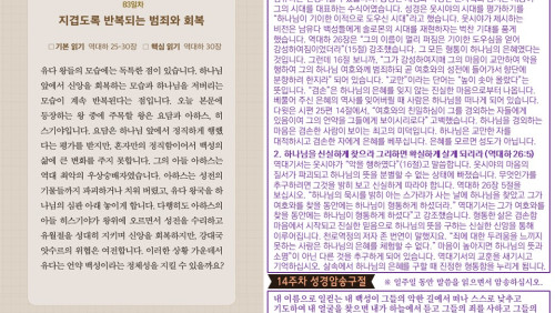 성경이 말씀하는 ‘거룩’은 ‘구별됨’입니다. 악한 것과 선한 것이 구별되고 더러운 것과 깨끗한 것이 구별되고 부정한 것과 정결한 것이 구별됩니다. 특히 구약의 거룩의 개념이 성소의 구조에 반영되었습니다. 이방인과 이스라엘 사람들을 이방인의 뜰이라는 담장으로 구별했습니다. 백성과 제사장을 성소라는 구역으로 구별하고 일반 제사장들과 대제사장을 지성소에 들어갈 수 있는 자격과 공간으로 구별했습니다. 최종적으로는 하나님과 인간을 구별하는 것이 있었는데 지성소의 ‘휘장’입니다. 예수 그리스도의 십자가 위에서 하나님과 인간사이를 가로막는 최종적인 장벽인 휘장이 찢어졌습니다. 히브리서 10장 10절을 보면, “이 뜻을 따라 예수 그리스도의 몸을 단번에 드리심으로 말미암아 우리가 거룩함을 얻었노라” 선언합니다. 우리가 “예수의 피를 힘입어서 성소에 들어갈 담력을 얻게 된 것”(히10:19)입니다. 지구상에 존재했던 모든 문명에는 “담장문화”라는 것이 있습니다. 담을 쌓고 벽을 세우는 인간의 문화는 죄와 사망의 율법으로부터 자기 스스로를 보호하려는 생존 본능입니다. 이 모든 것들이 세상은 결코 완전한 자유와 해방을 누릴 수 없는 타락한 세상임을 반증합니다. 국가이든지 사람이든지 세상은 언제나 담을 쌓고 벽을 세웁니다. 막힌 담을 제거하고 하나님과 이웃과의 진정한 관계를 열어주신 우리 주 예수 그리스도를 생각하십시오. 성도가 추구하는 진정한 거룩함은 그리스도 안에서 허락된 하나님과의 친밀함입니다. 여러분은 하나님과 매일 친밀하게 동행하고 계십니까?