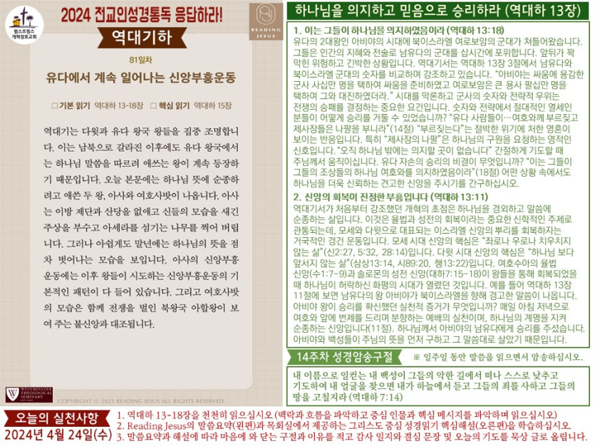 (2024년 4월 24일) 'Reading Jesus 응답하라' 말씀요약과 본문해설 (제81일차) 입니다.