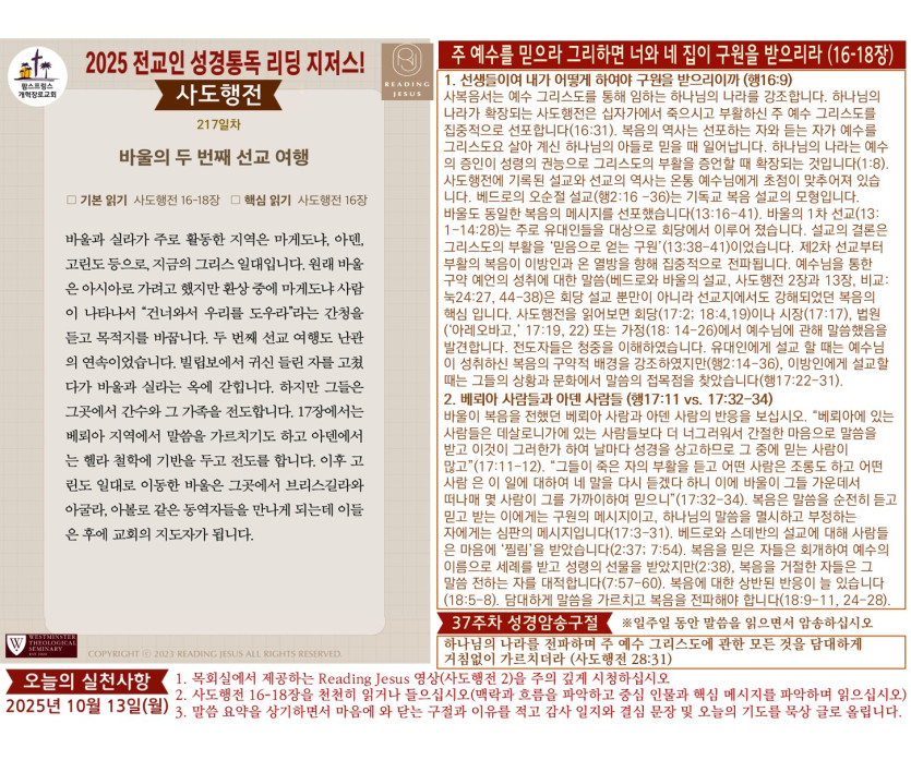 (2025년 10월 13일) '리딩 지저스' 성경읽기 영상과 말씀요약/본문해설 (제217일차)