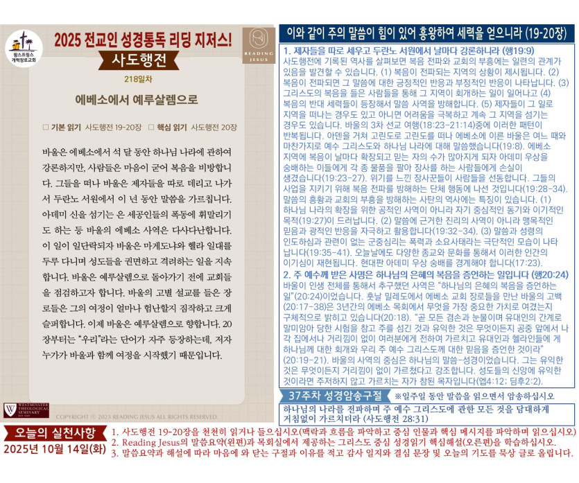 (2025년 10월 14일) '리딩 지저스' 성경읽기 영상과 말씀요약/본문해설 (제218일차)