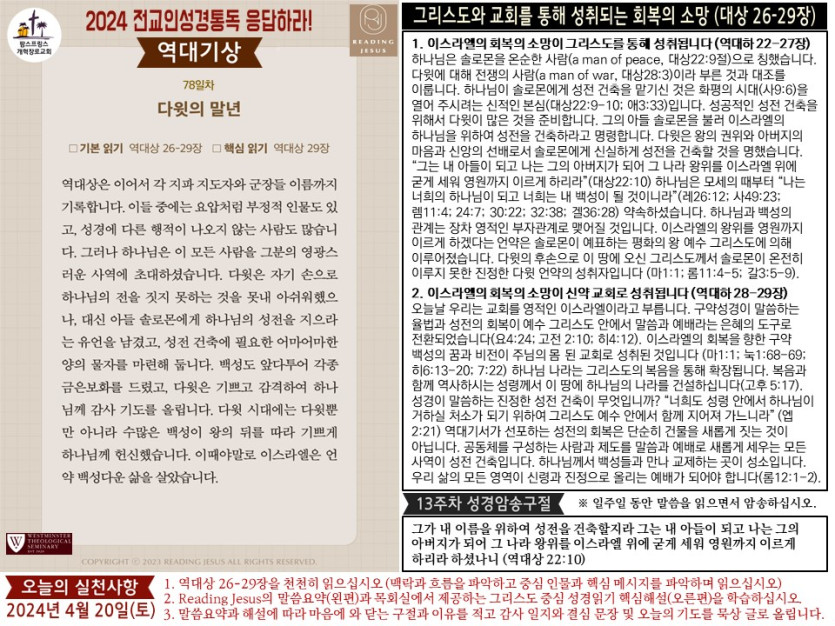 (2024년 4월 20일) 'Reading Jesus 응답하라' 말씀요약과 본문해설 (제78일차) 입니다.