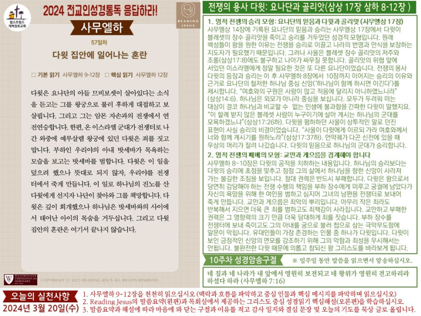 (2024년 3월 20일) 'Reading Jesus 응답하라' 말씀요약과 본문해설 (제57일차) 입니다.