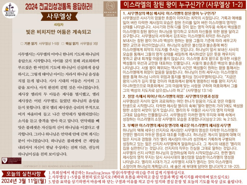(2024년 3월 11일) 'Reading Jesus 응답하라' 말씀요약과 본문해설 (제49일차) 입니다.