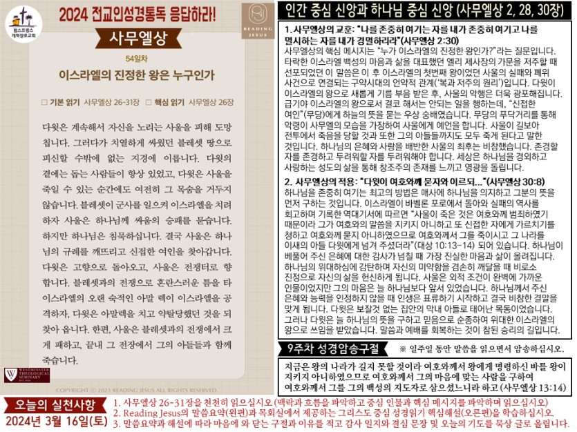 (2024년 3월 16일) 'Reading Jesus 응답하라' 말씀요약과 본문해설 (제54일차) 입니다.