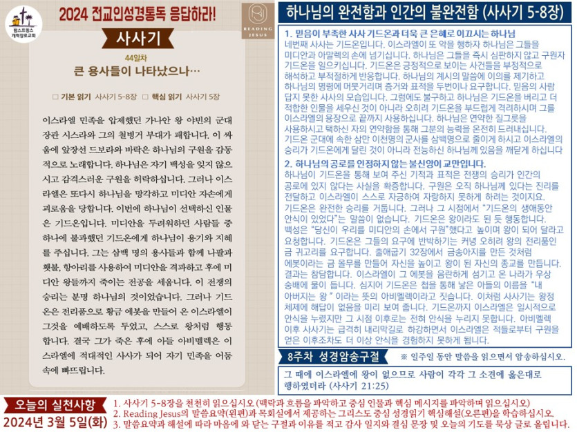 (2024년 3월 5일) 'Reading Jesus 응답하라' 말씀요약과 본문해설 (제44일차) 입니다.