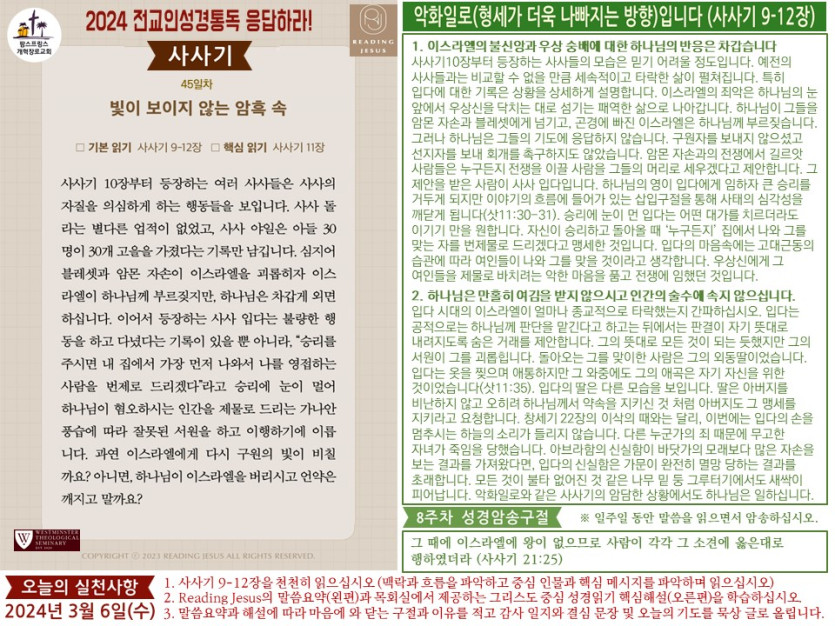 (2024년 3월 6일) 'Reading Jesus 응답하라' 말씀요약과 본문해설 (제45일차) 입니다.