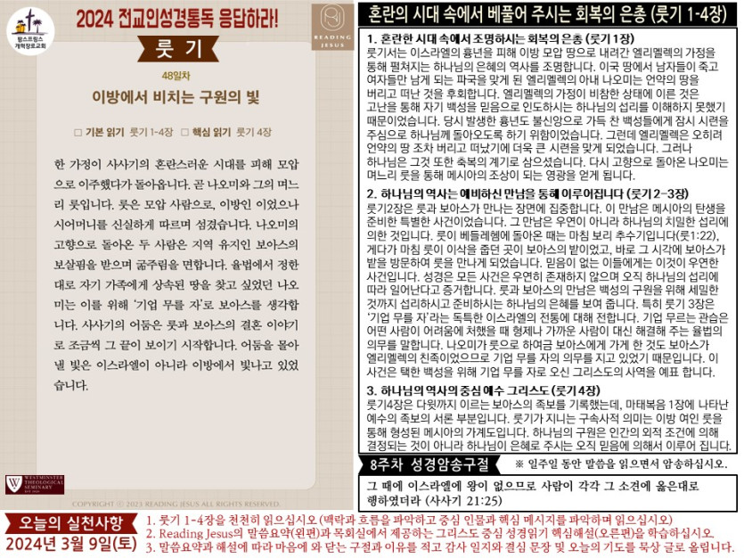 (2024년 3월 9일) 'Reading Jesus 응답하라' 말씀요약과 본문해설 (제48일차)입니다.