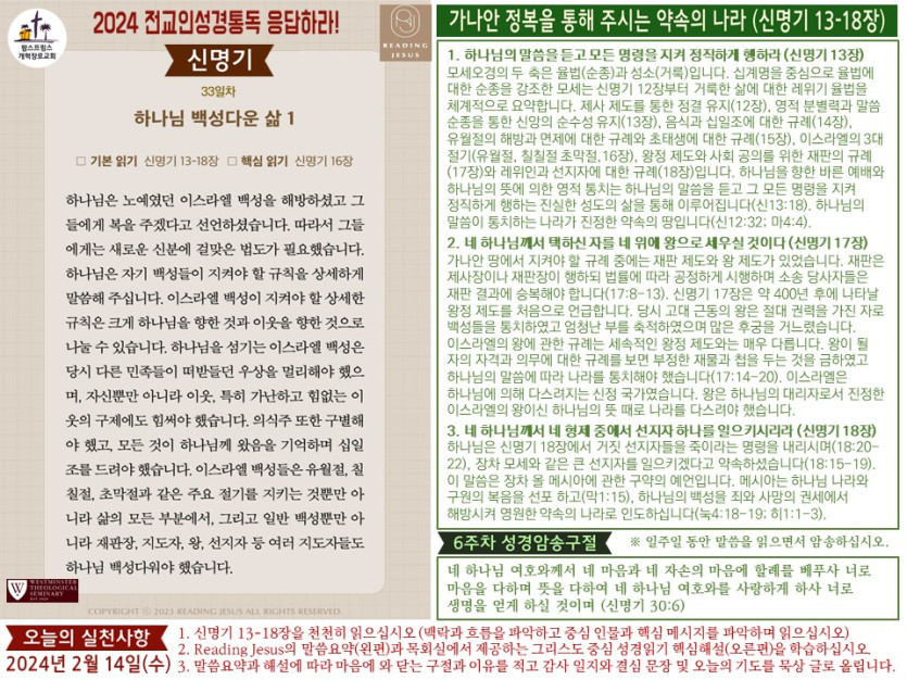(2024년 2월 14일) 'Reading Jesus 응답하라' 말씀요약과 본문해설 (제33일차) 입니다.