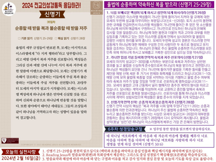 (2024년 2월 16일) 'Reading Jesus 응답하라' 말씀요약과 본문해설 (제35일차)입니다.