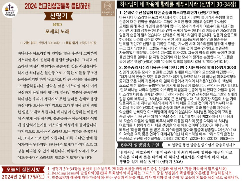 (2024년 2월 17일) 'Reading Jesus 응답하라' 말씀요약과 본문해설 (제36일차) 입니다.