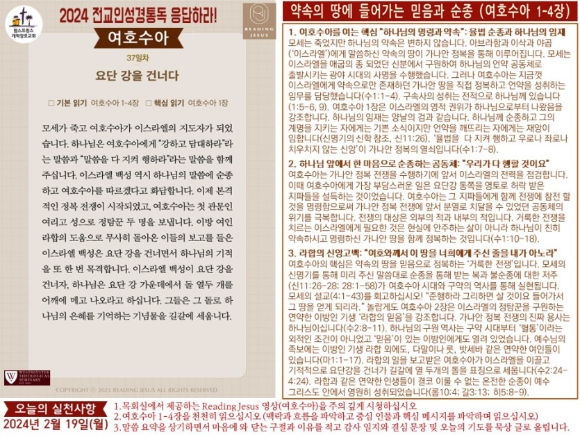 (2024년 2월 19일) 'Reading Jesus 응답하라' 말씀요약과 본문해설 (제37일차)입니다.
