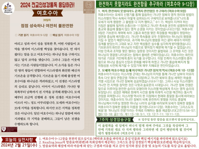 (2024년 2월 21일) 'Reading Jesus 응답하라' 말씀요약과 본문해설 (제39일차) 입니다.
