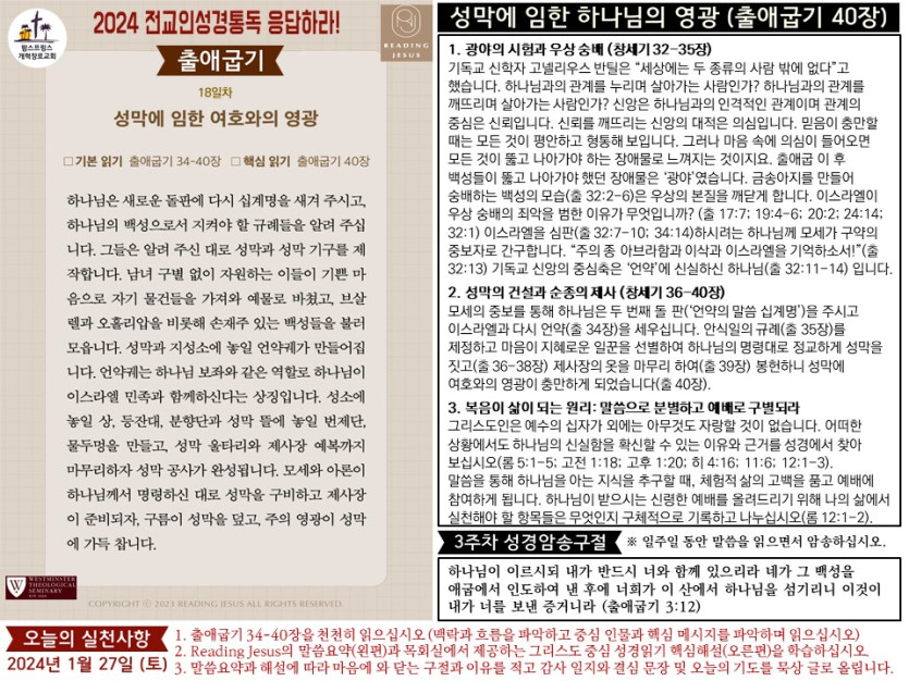 (2024년 1월 27일) 'Reading Jesus 응답하라' 말씀요약과 본문해설 (제18일차) 입니다.